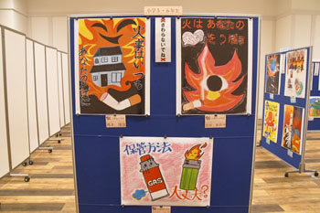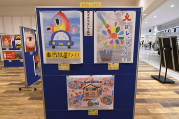 11月9日~15日にイオンモール座間2階で「防火ポスター展」を開催しました。同展では秋季火災予防運動期間中、市内小・中学校から募集した710点の中から、優秀作品35点が展示されました。